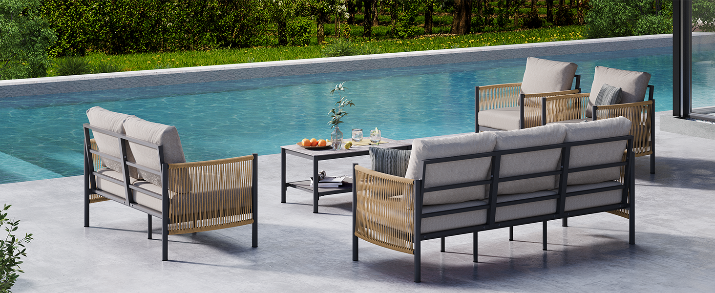 Aluminum Outdoor Patio Furniture Set with Dual-Layer Coffee Table